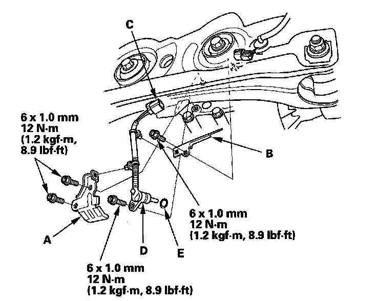 4. Install the differential fluid temperature sensor with a new O-ring (E) in the reverse order of removal.