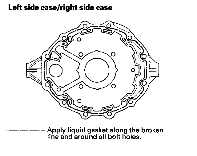 - You must assemble the housings with you do in 5 minutes after applying the liquid gasket. If not, the sealing surface must be cleaned, and the liquid gasket reapplied.