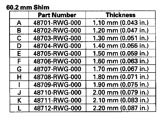 10. Select the proper 60.2 mm shim from the table. Follow the example below, and use the measurements you made in steps 7 to 9.