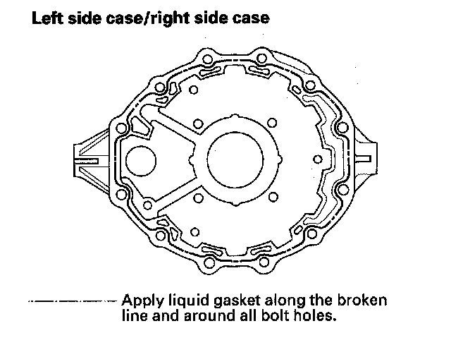 - You must assemble the housings within do in 5 minutes after applying the liquid gasket. If not, the sealing surface must be cleaned, and the liquid gasket reapplied.