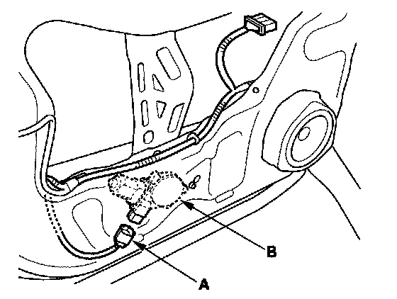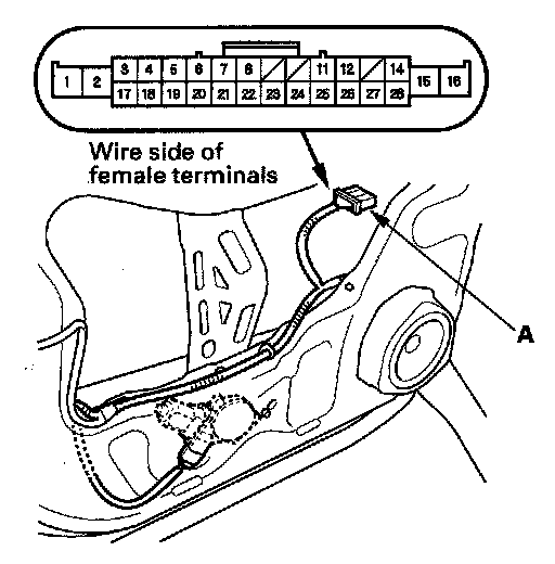 Driver's Power Window Motor Test1. Remove the door panel, and disconnect the driver's door wire harness B 28P connector (A) from the driver's door wire harness A.