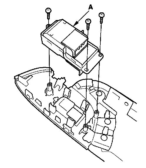 3. Remove the three mounting screws and the front passenger's power window switch (A).