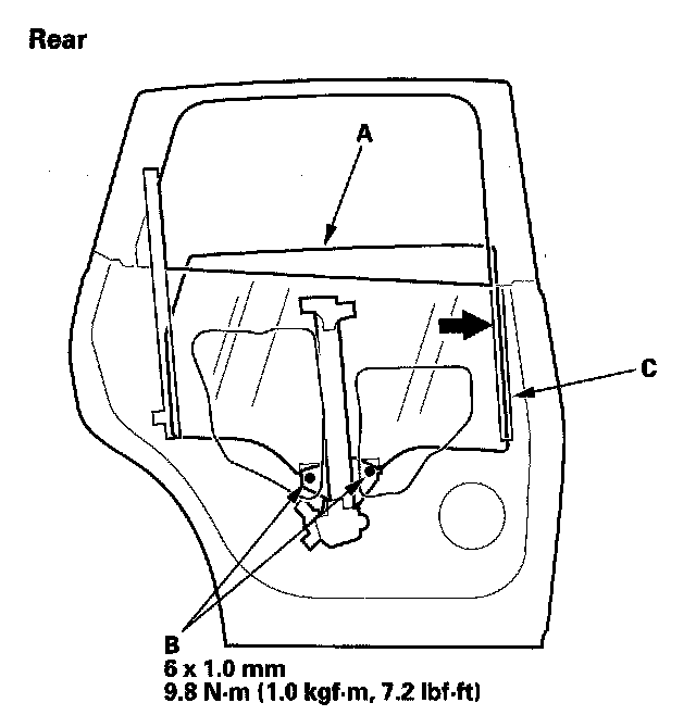Front and Rear Door Glass AdjustmentNOTE: Check the weatherstrip and glass run channel for damage or deterioration, and replace them if necessary.
