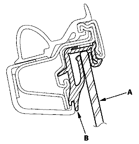 6. Raise the glass fully, and check for gaps. Also make sure that the glass (A) contacts the glass run channel (B) evenly.