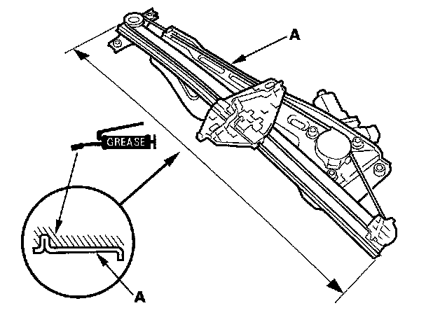 7. Apply multipurpose grease to all the sliding surfaces of the regulator (A) where shown.