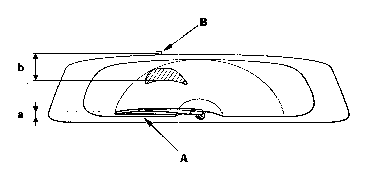 b: Position at about 5.1 in. (130.2 mm) from the rear washer nozzle (B)