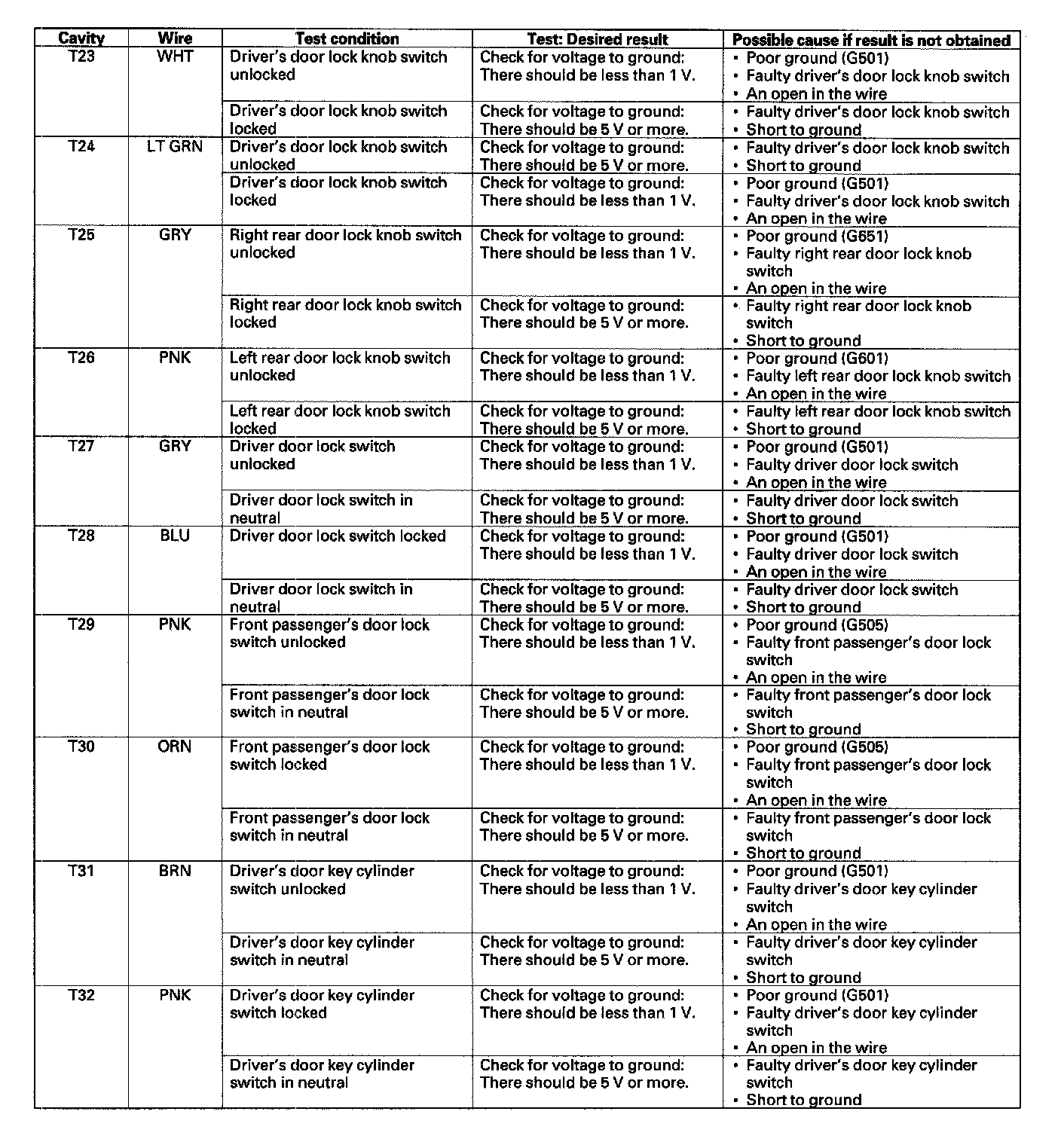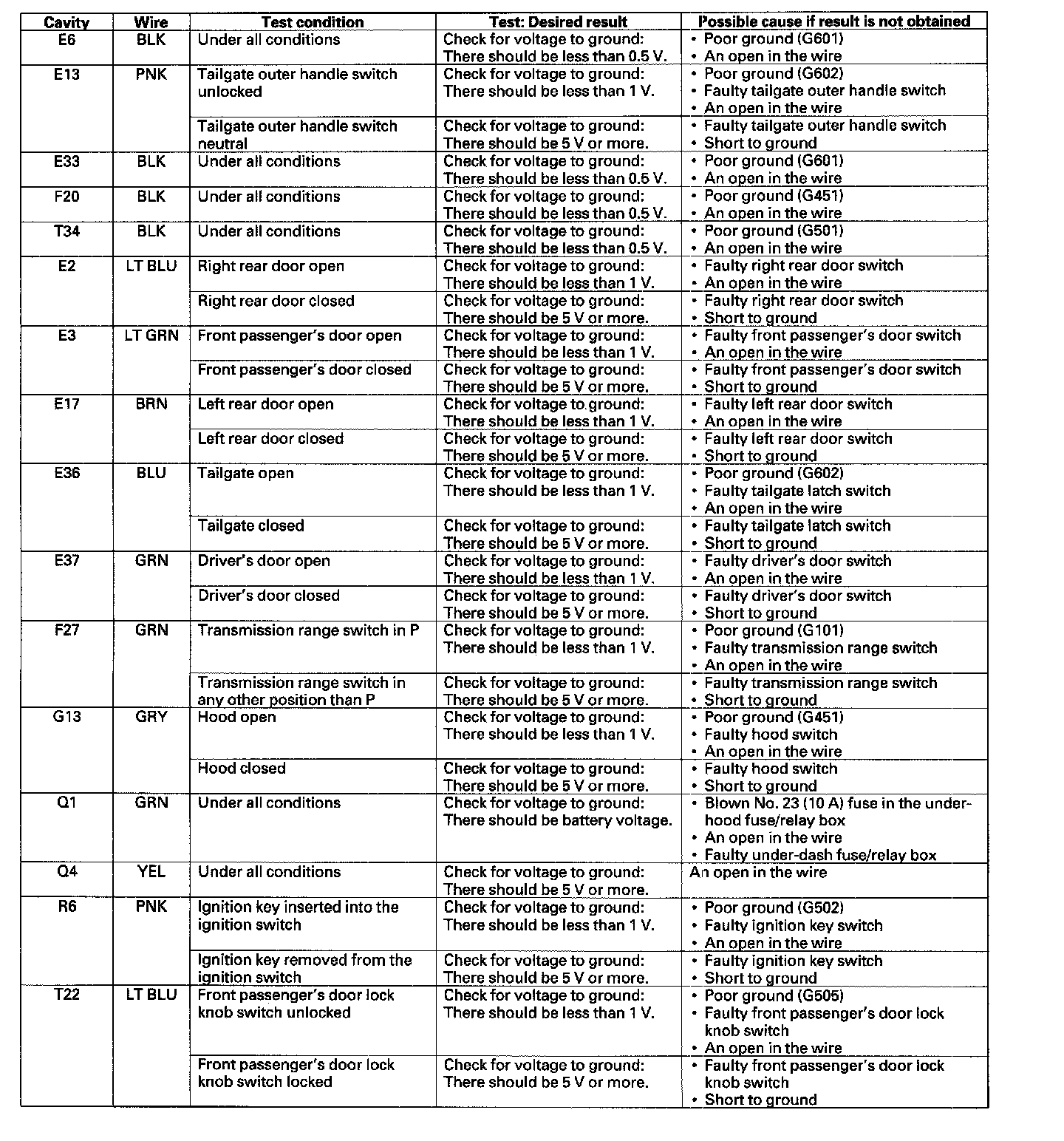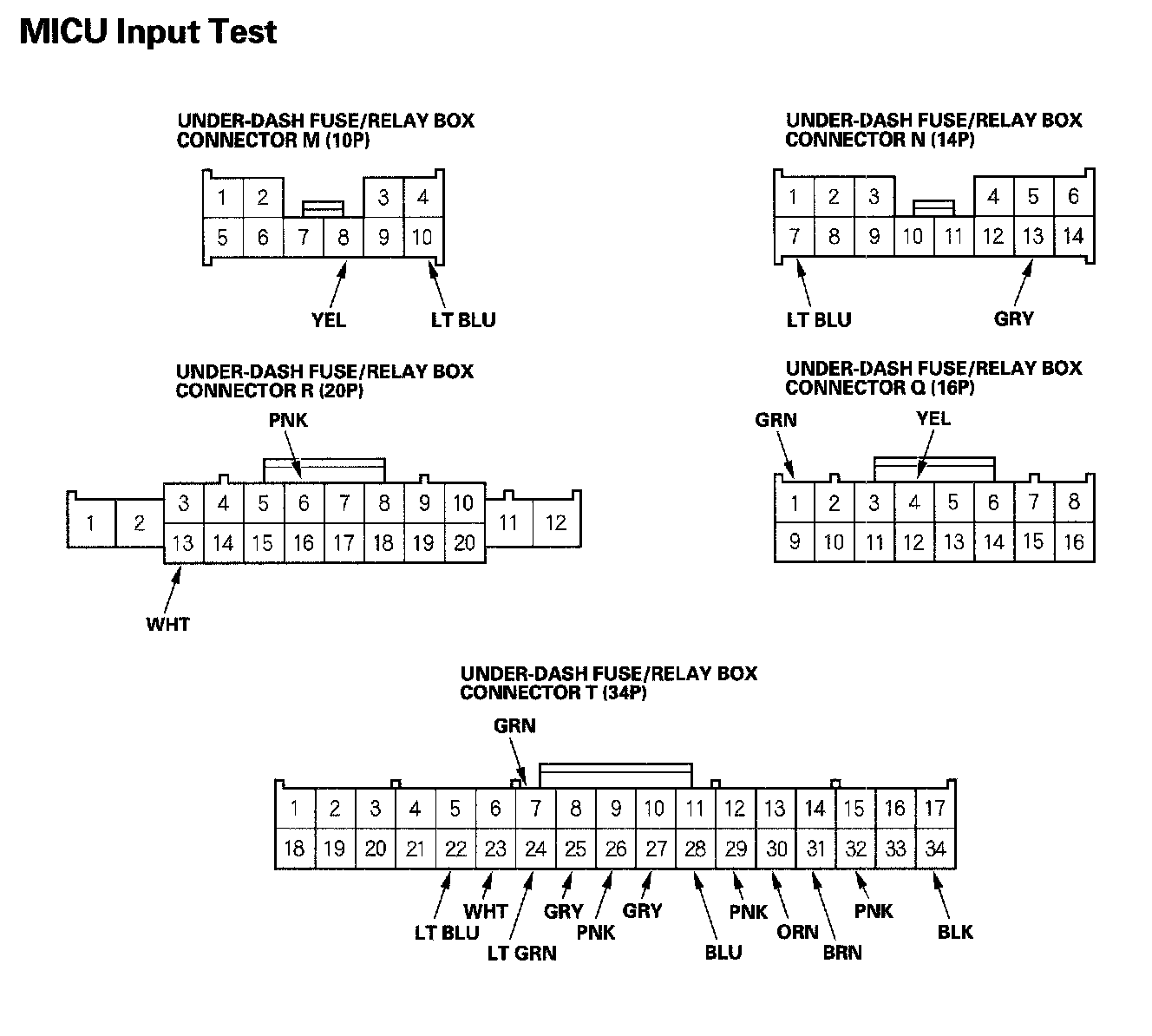 6. Reconnect the connectors to the under-dash fuse/relay box, and make these input tests at the connectors.