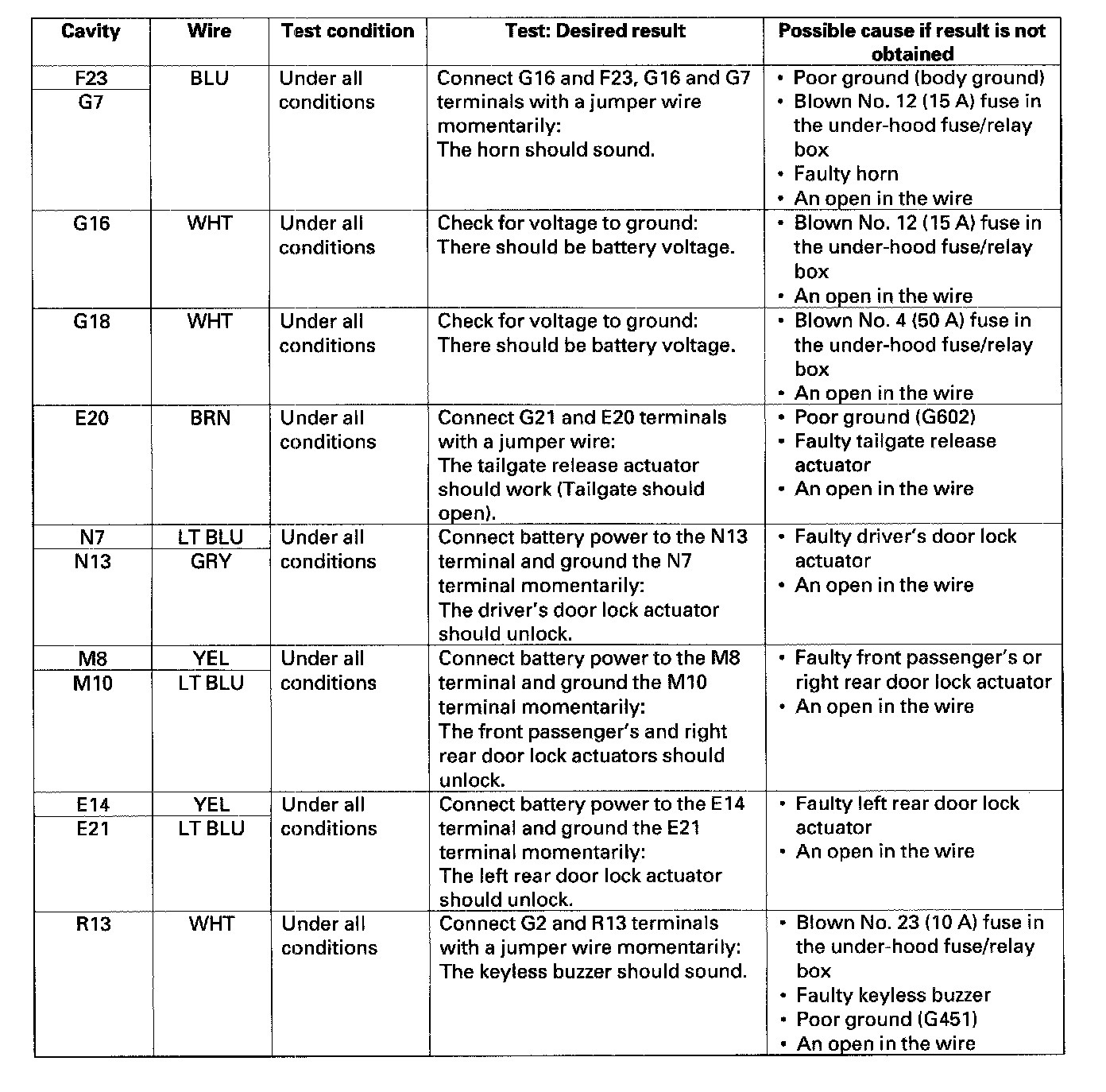 - If all the input tests prove OK, the MICU must be faulty; replace the under-dash fuse/relay box.