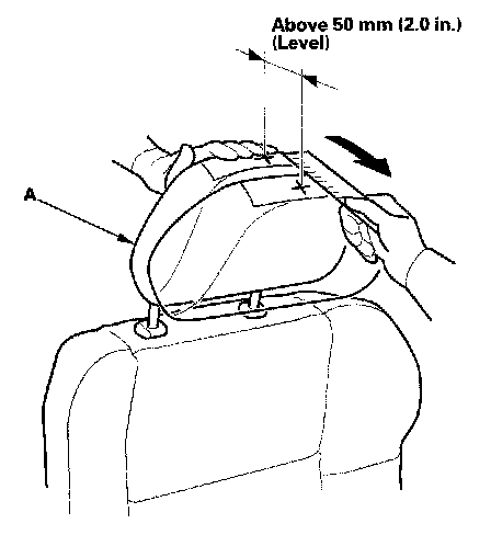 6. Push the head restraint (A) forward, and check: With a scale, measure the level amount of the head restraint movement. The head restraint should move than 50 mm (2.0 in.) without resistance. If it is less than 50 mm (2.0 in.), or the head restraint doesn't move smoothly, replace the seat-back frame assembly: