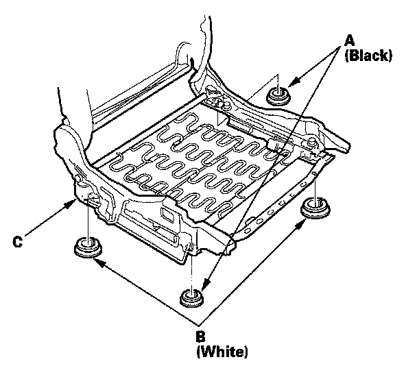 7. If necessary, remove the bushings (A, B) from the seat cushion frame (C).