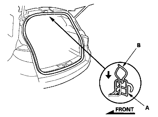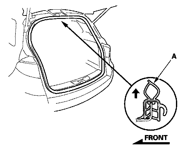 Tailgate Weatherstrip Replacement1. Remove the tailgate weatherstrip (A) by pulling out on it.
