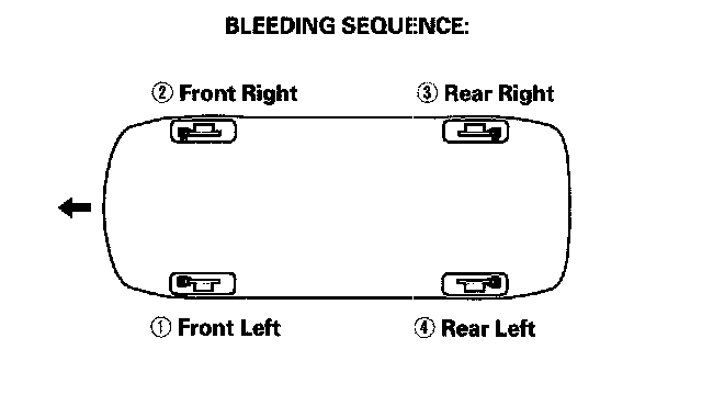 NOTE: Bleed the calipers or the wheel cylinders in the sequence shown.