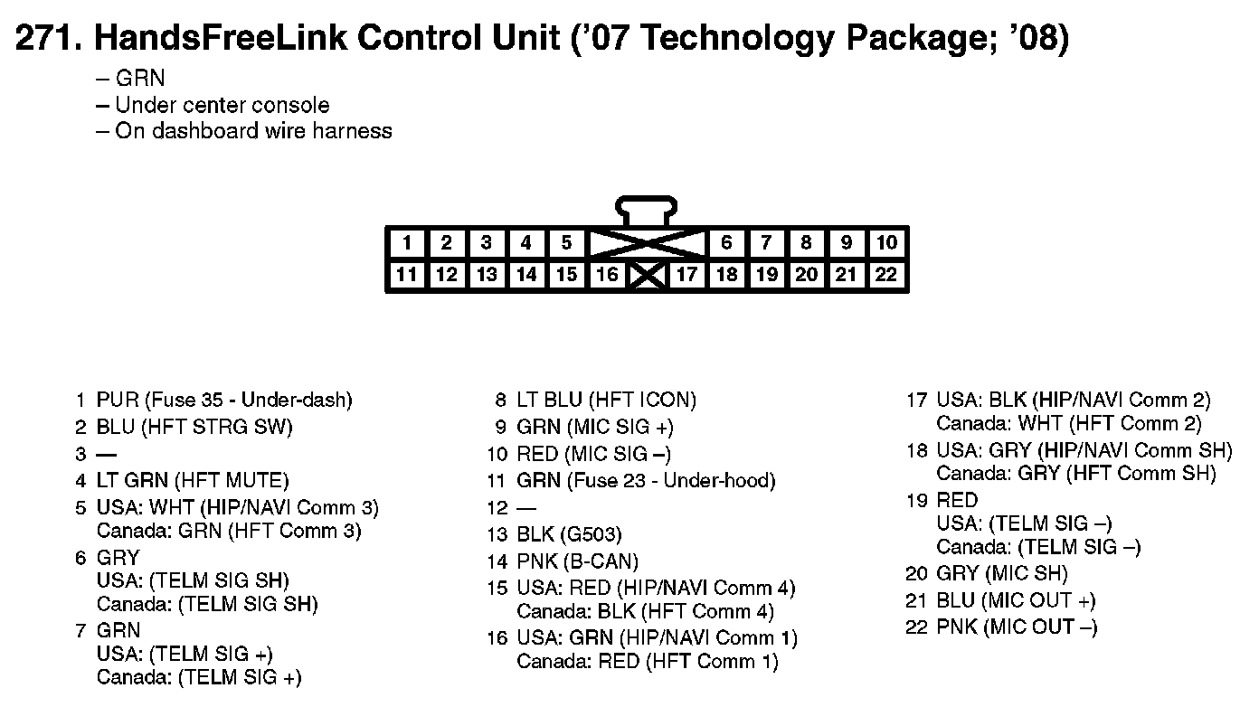 271. HandsFreeLink Control Unit ('07 Technology Package; '08):