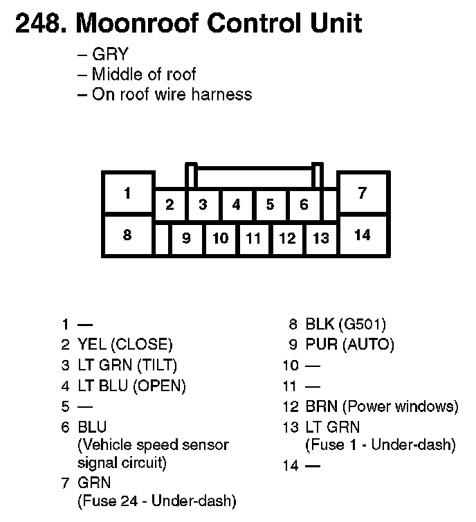 248. Moonroof Control Unit: