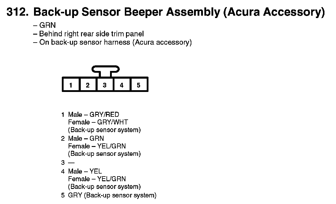 312. Back-up Sensor Beeper Assembly (Acura Accessory):