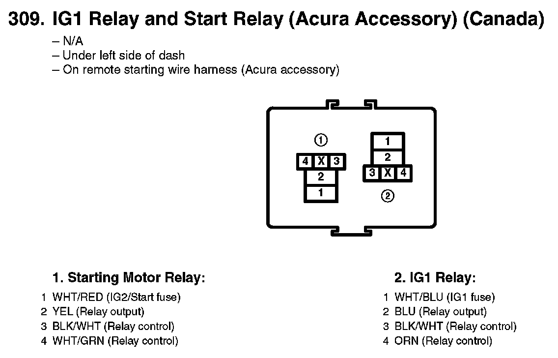 309. IG1 Relay And Start Relay (Acura Accessory) (Canada):