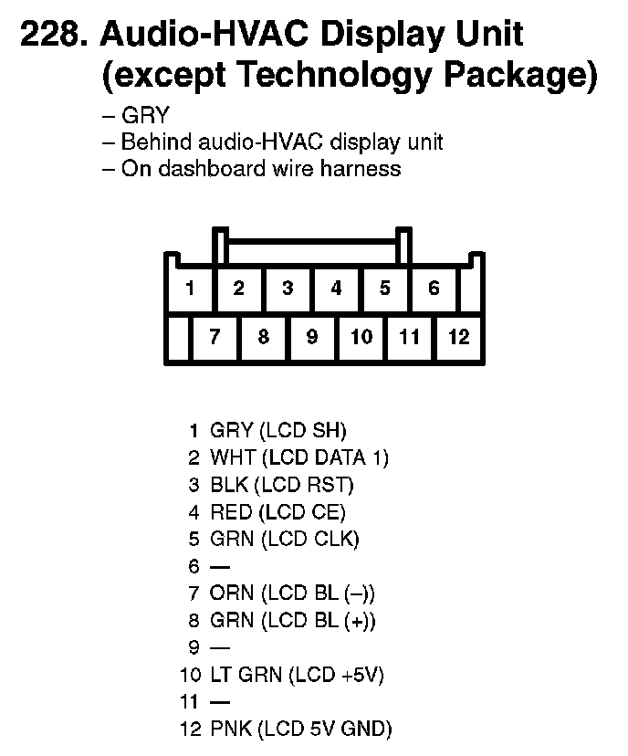 228. Audio-HVAC Display Unit (except Technology Package):