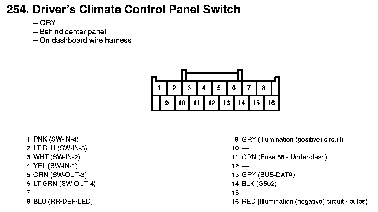 254. Driver's Climate Control Panel Switch: