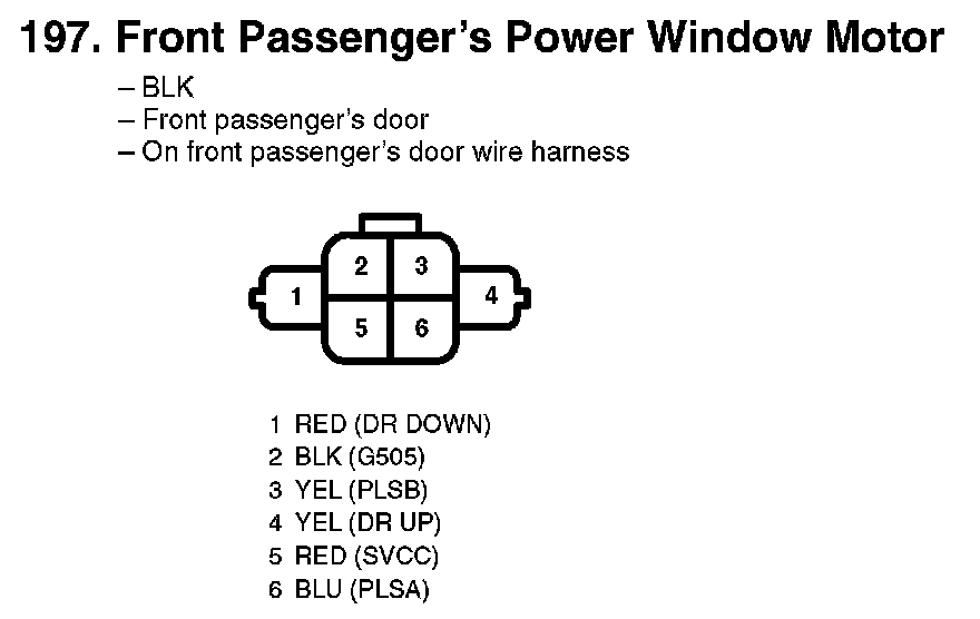 197. Front Passenger's Power Window Motor: