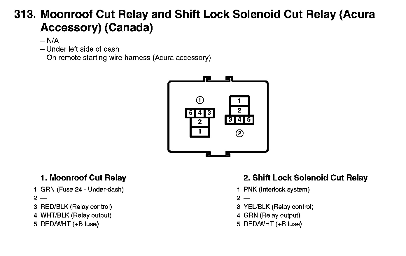 313. Moonroof Cut Relay And Shift Lock Solenoid (Acura Accessory) (Canada):