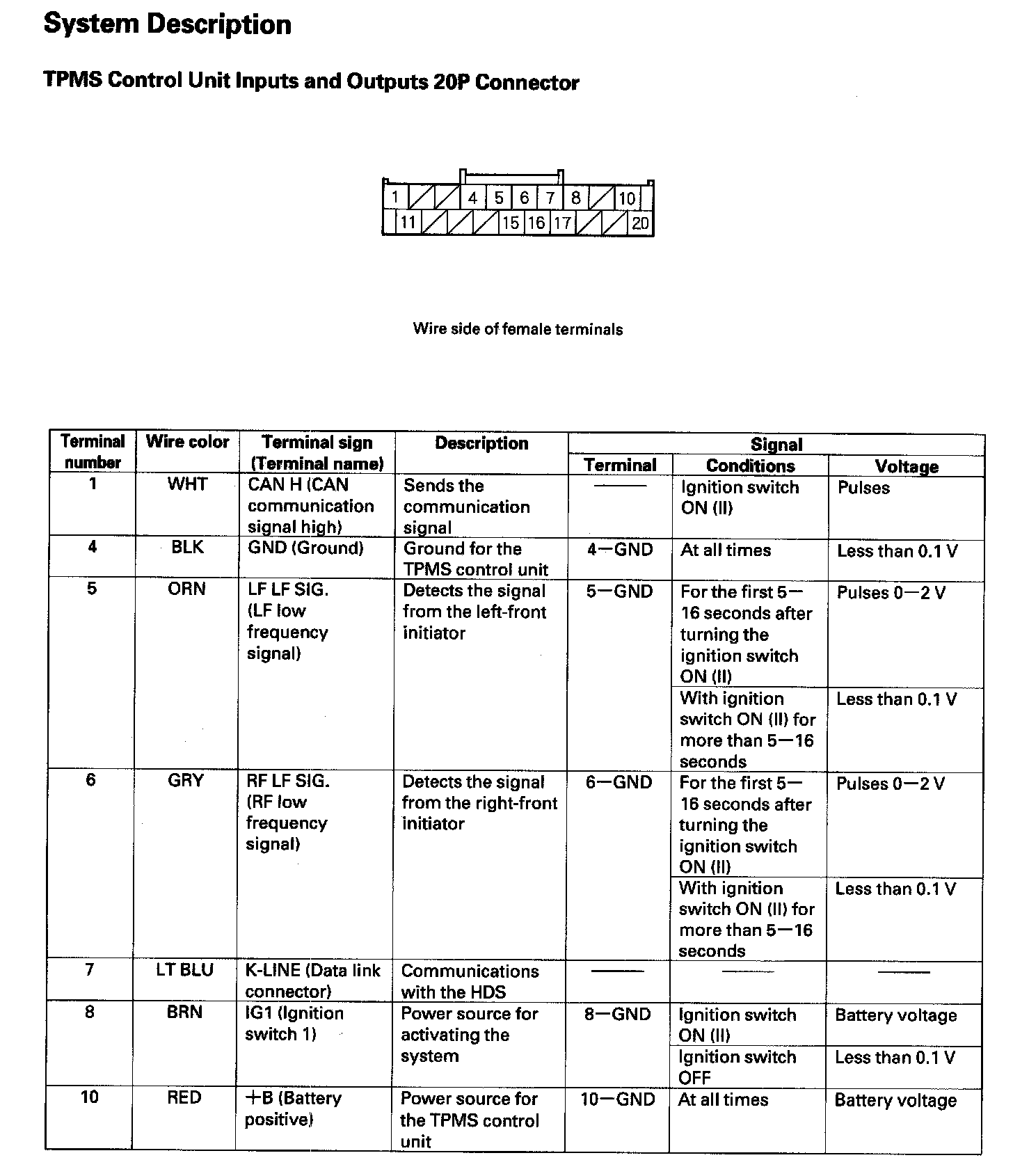 TPMS Control Unit Inputs And Outputs 20P Connector (Part 1):