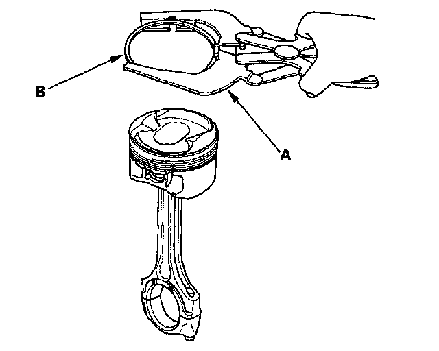 5. Measure the piston ring end-gap (B) with a feeler gauge:
