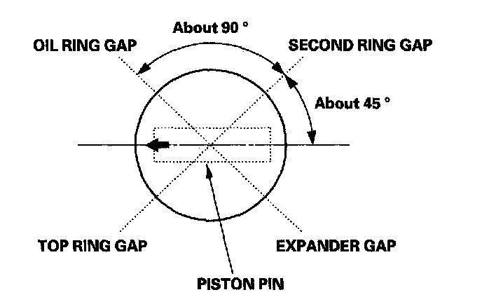 ^ If the gap is too large, recheck the cylinder bore diameter against the wear limits. If the bore is beyond the service limit, the engine block must be rebored.