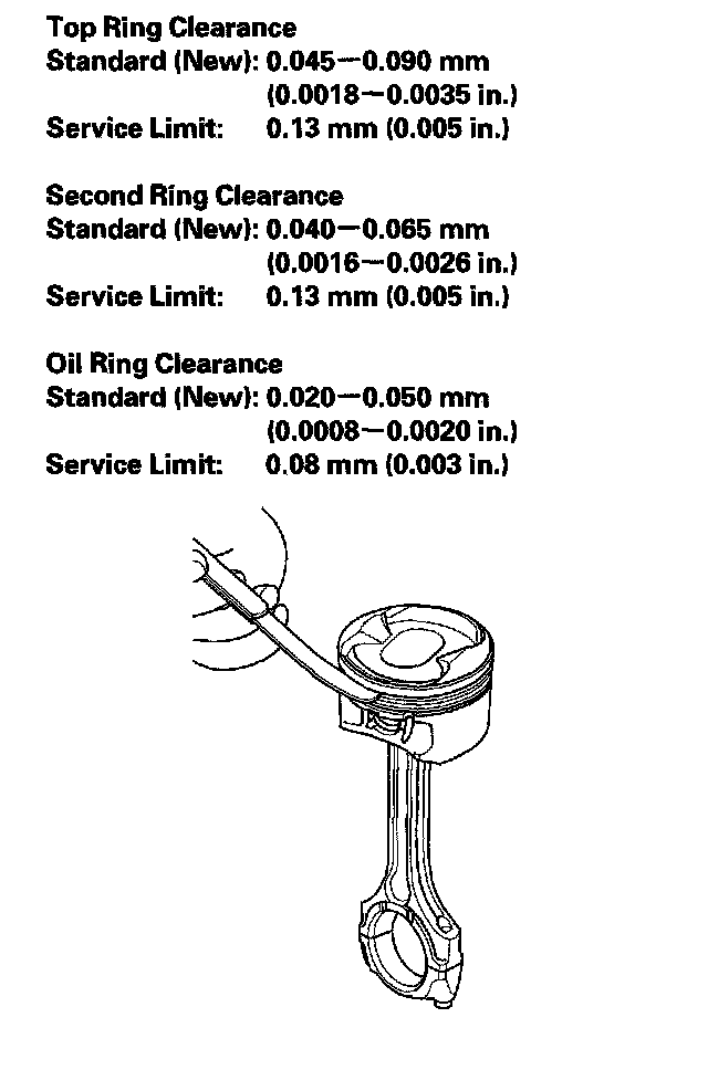 9. After installing a new set of rings, measure the ring-to-groove clearances.