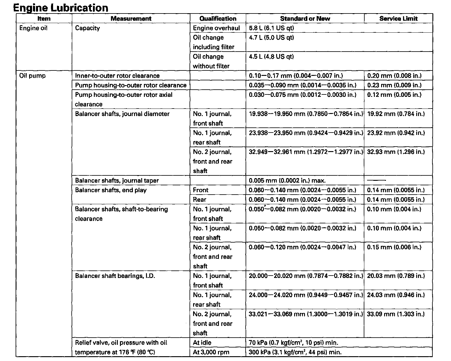 Engine Lubrication: Specifications