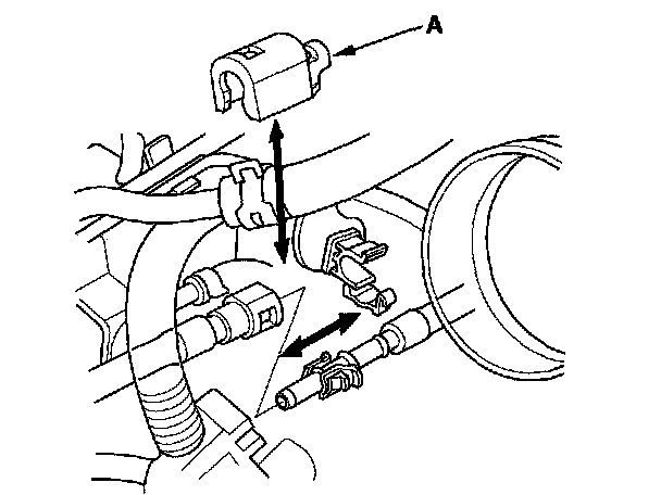 16. Remove the quick-connect fitting cover (A), then disconnect the fuel feed hose.