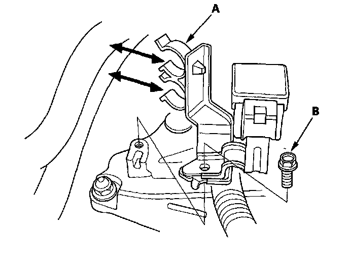 17. Remove the heater hoses from the clamps (A), then remove the bolt (B) securing the heater hose clamp bracket.