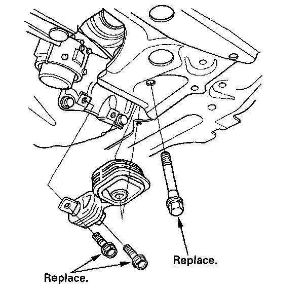56. Remove the side engine mount bracket mounting bolt and nut.