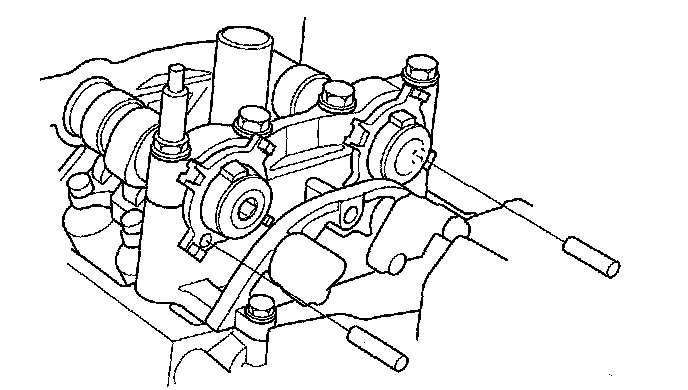 ^ Before this procedure, check that the variable valve timing control (VTC) actuator is locked by turning the VTC actuator counterclockwise. If not locked, turn the VTC actuator clockwise until it stops, then recheck it. If it is still not locked, replace the VTC actuator.