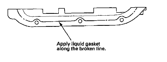 17. Apply liquid gasket, P/N 08717-0004, 08718-0001, 087180003, or 08718-0009, evenly to the oil pan mating surface of the chain case. Install the component within 5 minutes of applying the liquid gasket.