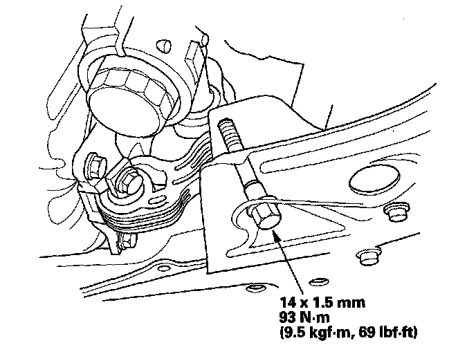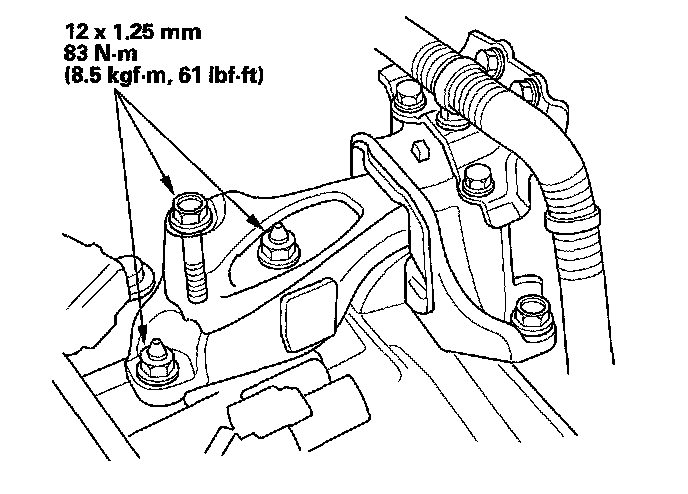 28. Tighten the transmission mounting bolt and nuts.
