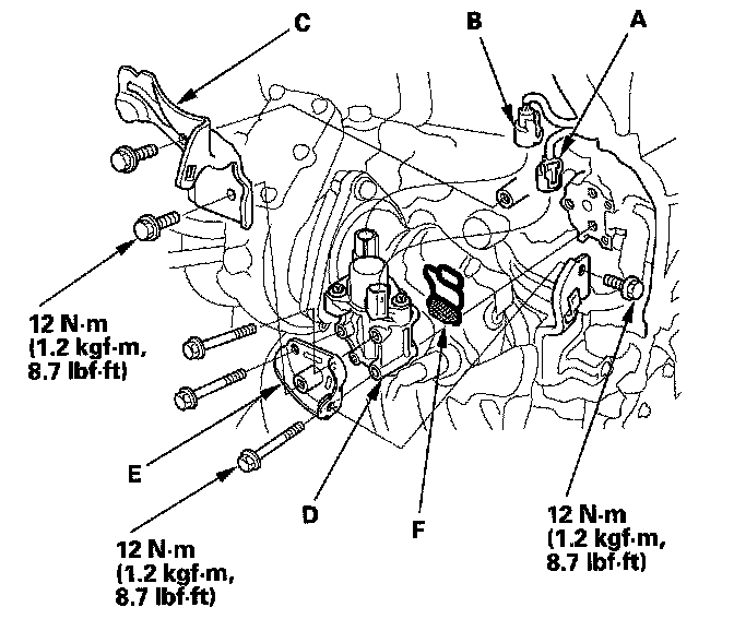 6. Install the parts in the reverse order of removal with a new solenoid valve filter (F).