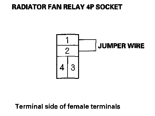 4. Connect radiator fan relay 4P socket terminals No. 1 and No. 2 with a jumper wire.