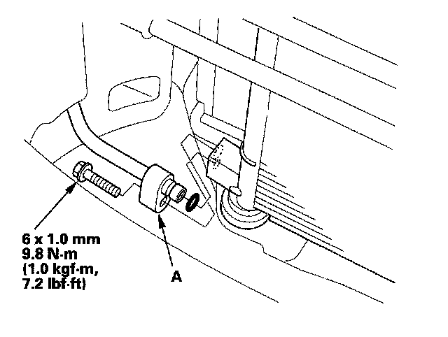 4. Remove the bolt, then disconnect the receiver line (A) from the A/C condenser.