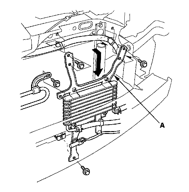 5. Remove the bolts, then pull the bracket (A) down slightly.
