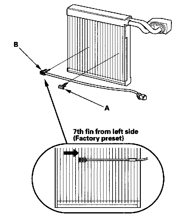 NOTE: The evaporator temperature sensor is installed in the fin at the 7th fin from the left side by the factory preset. 7th fin from left side (Factory preset)