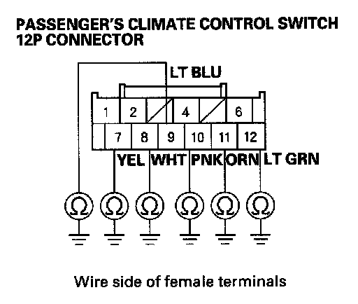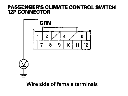 10. Check for continuity between body ground and the passenger's climate control switch 12P connector terminals as shown.