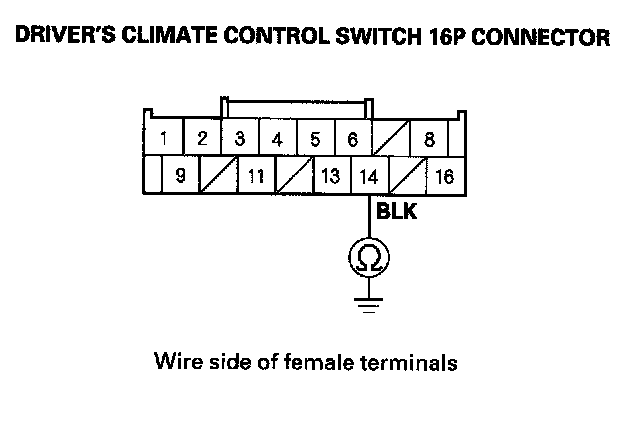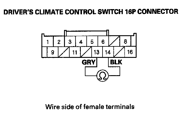 22. Check for continuity between driver's climate control switch 16P terminal No. 13 and terminal No.14.