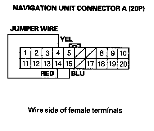 10. Connect the navigation unit connector A (20P) terminals No. 4, Hand No. 15 with a jumper wire.