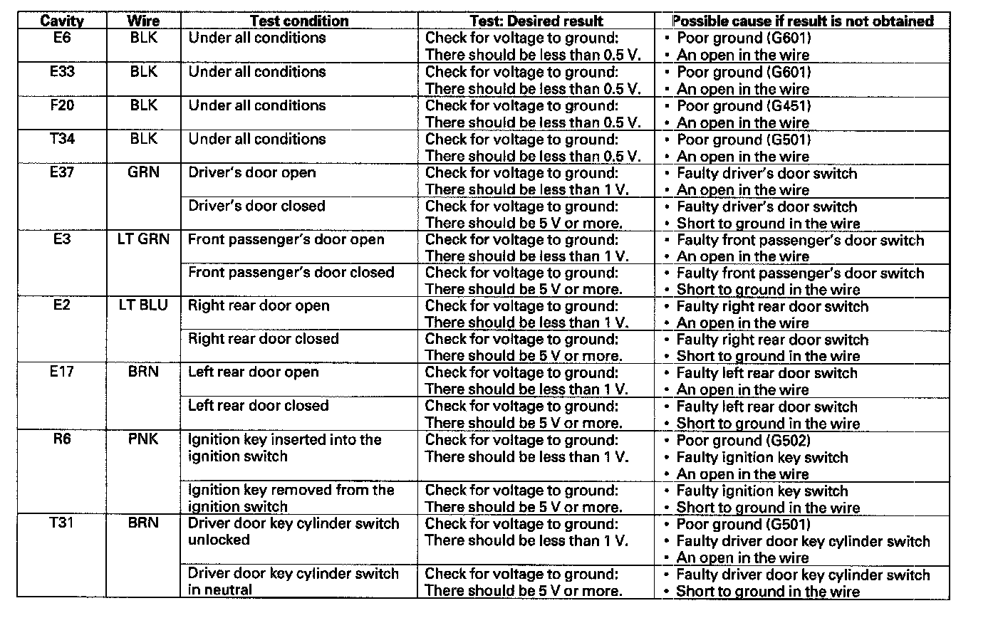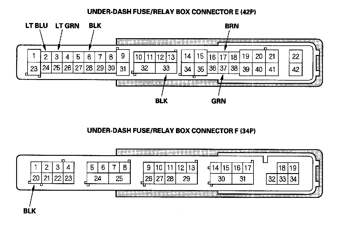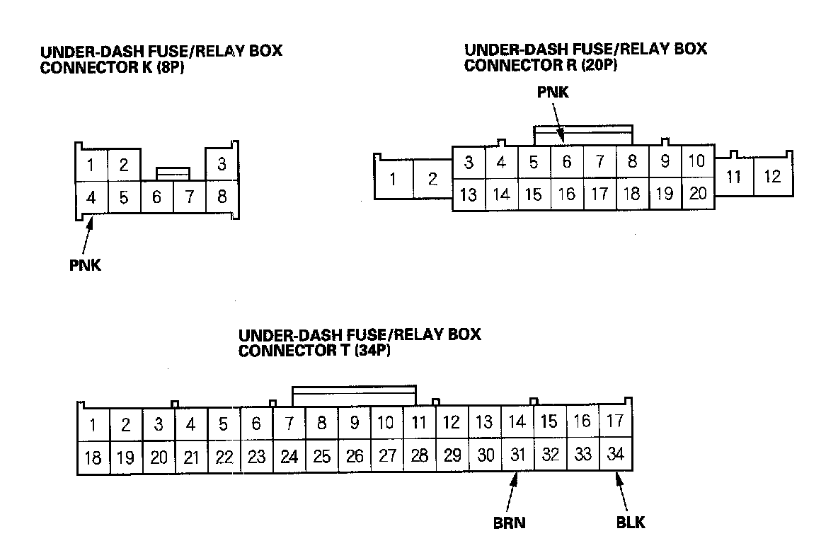 6. Reconnect the connectors to the under-dash fuse/relay box, and make these input tests at the connectors.