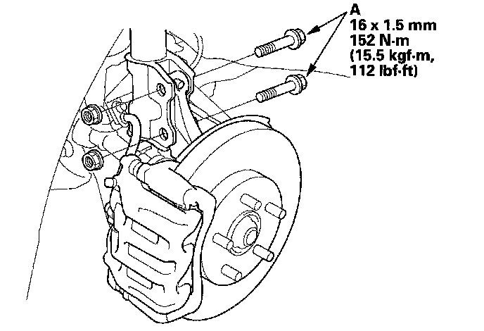 3. Loosen the flange bolts (A), and adjust the camber by moving the bottom of the damper within the range of the damper pinch bolt free play.