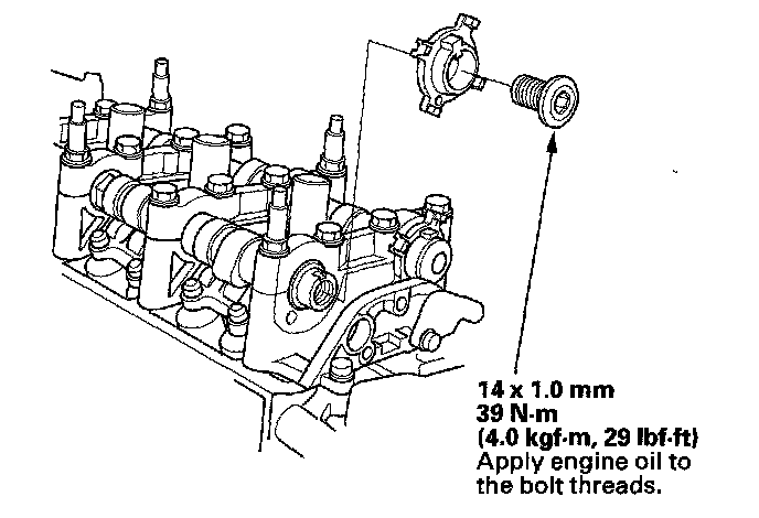 3. Hold the camshaft with an open-end wrench, then loosen the bolt.