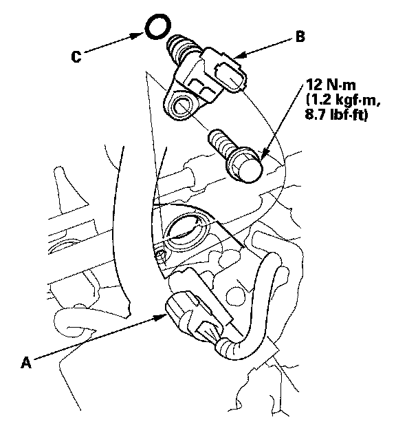 5. Install the parts in the reverse order of removal with a new O-ring (C).