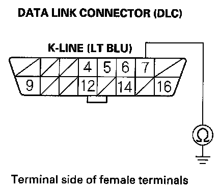 19. Check for continuity between DLC terminal No. 7 and body ground.