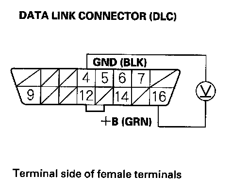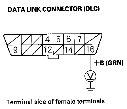28. Measure voltage between DLC terminals No. 4 and No. 16.
