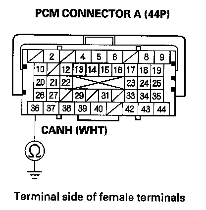 34. Check for continuity between PCM connector terminal A36 and body ground.